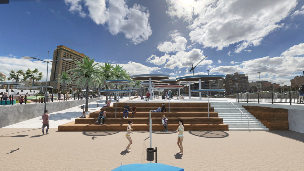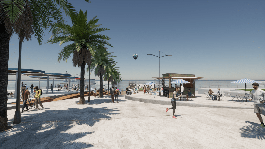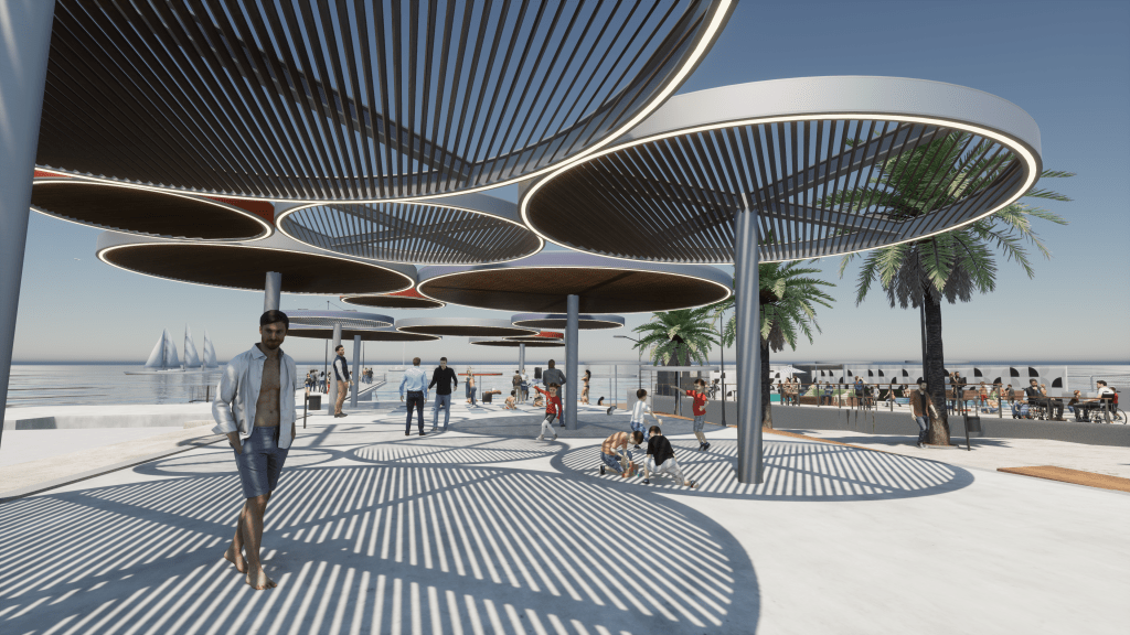In begin 2021 heeft Studio de Bom samen met Humankind & Nadel Roizin architects een ontwerp gemaakt voor een gedeelte van de boulevard in de kuststad Bat Yam. We hebben van een plek die als een blokkerende betonnen parkeerbadkuip functioneerde omgetoverd naar een toegankelijke entree voor het strand met een paviljoen/pergola voor verschillende culturele evenementen. Vast zul je afvragen waarom er niet meer groen is toegevoegd? Het extreem droge klimaat zorgt ervoor dat er veel onderhoud en hoge kosten nodig zijn voor het plaatsen van meer groen. Vandaar dat er in deze stad niet teveel groen kan worden toegepast. We hebben een palmbomen laan toegevoegd die behapbaar blijft met betrekking tot het onderhoud en de kosten. De koele schaduw plekken worden vooral gecreëerd door de pergola/paviljoen die we hebben ontworpen. Deze bied naast schaduw overdag in de avonduren een esthetische verlichting. De burgemeester en bestuur van Bat Yam waren zeer tevreden met het ontwerp. Het ontwerp is in 2023 gerealiseerd en is nu in gebruik. Iets waar we erg trots op zijn.