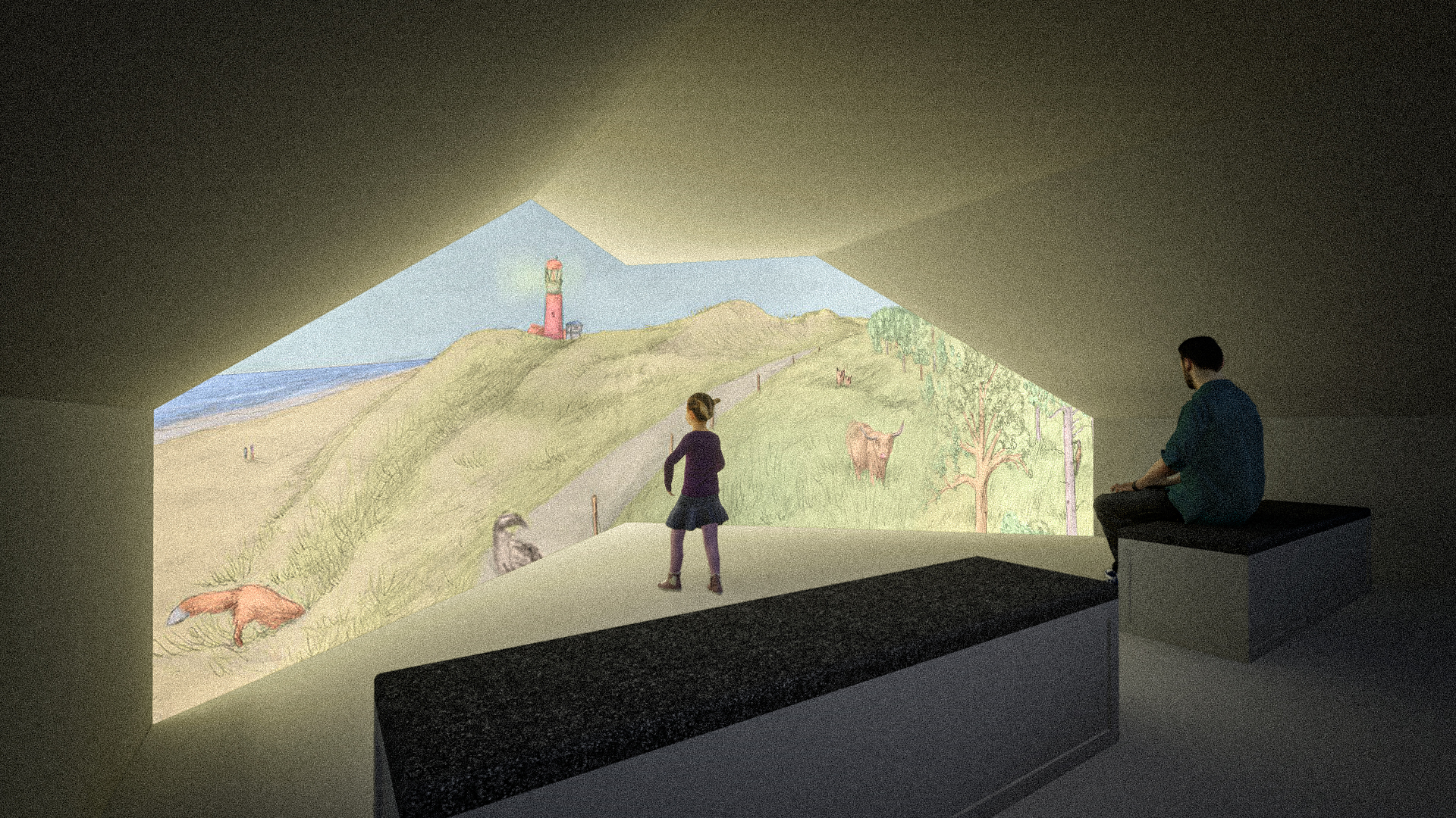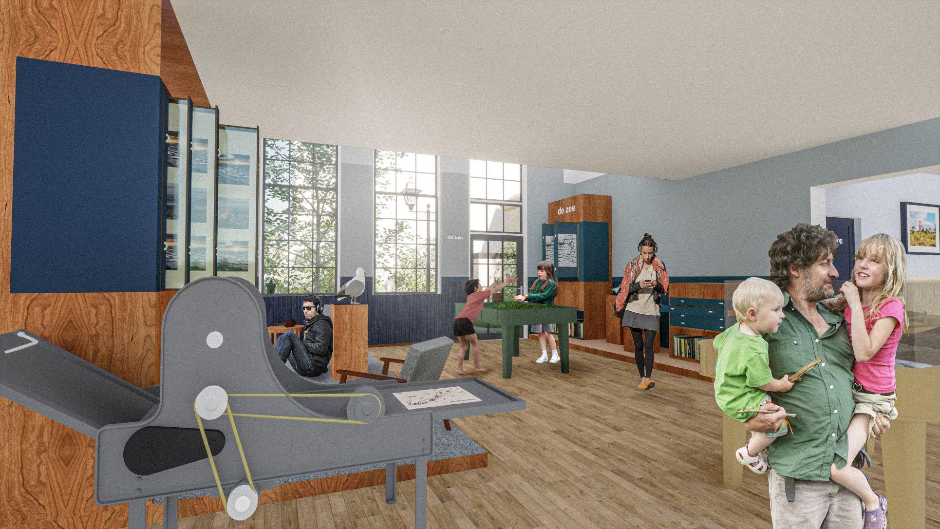 Vanaf de zomer van 2020 tot aan begin 2021 heeft StudiodeBom in opdracht van Triomf meegewerkt aan een vernieuwde Noordwester. De Noordwester is het bezoekerscentrum op Vlieland dat in 1984 is opgericht met als doel de gasten op Vlieland zoveel mogelijk van het eiland te laten zien. Ze liepen al jaren vast met de doorontwikkeling en groei van het bezoekerscentrum. Hiervoor heeft Triomf op ruimtelijk en beleving niveau gekeken hoe de Noordwester bezoekers en eilanders in deze nieuwe tijden kunnen bereiken. Het personeel en alle betrokkenen zoals de lokale wethouder zijn super enthousiast en zijn nu met man en macht de financiering proberen rond te krijgen. Het lijkt erop dat waarschijnlijk gaat lukken. Ik als Studio de Bom ben door gevraagd om mee te helpen aan de concept & creatie en ben verantwoordelijk voor alle ruimtelijke ontwerpen.