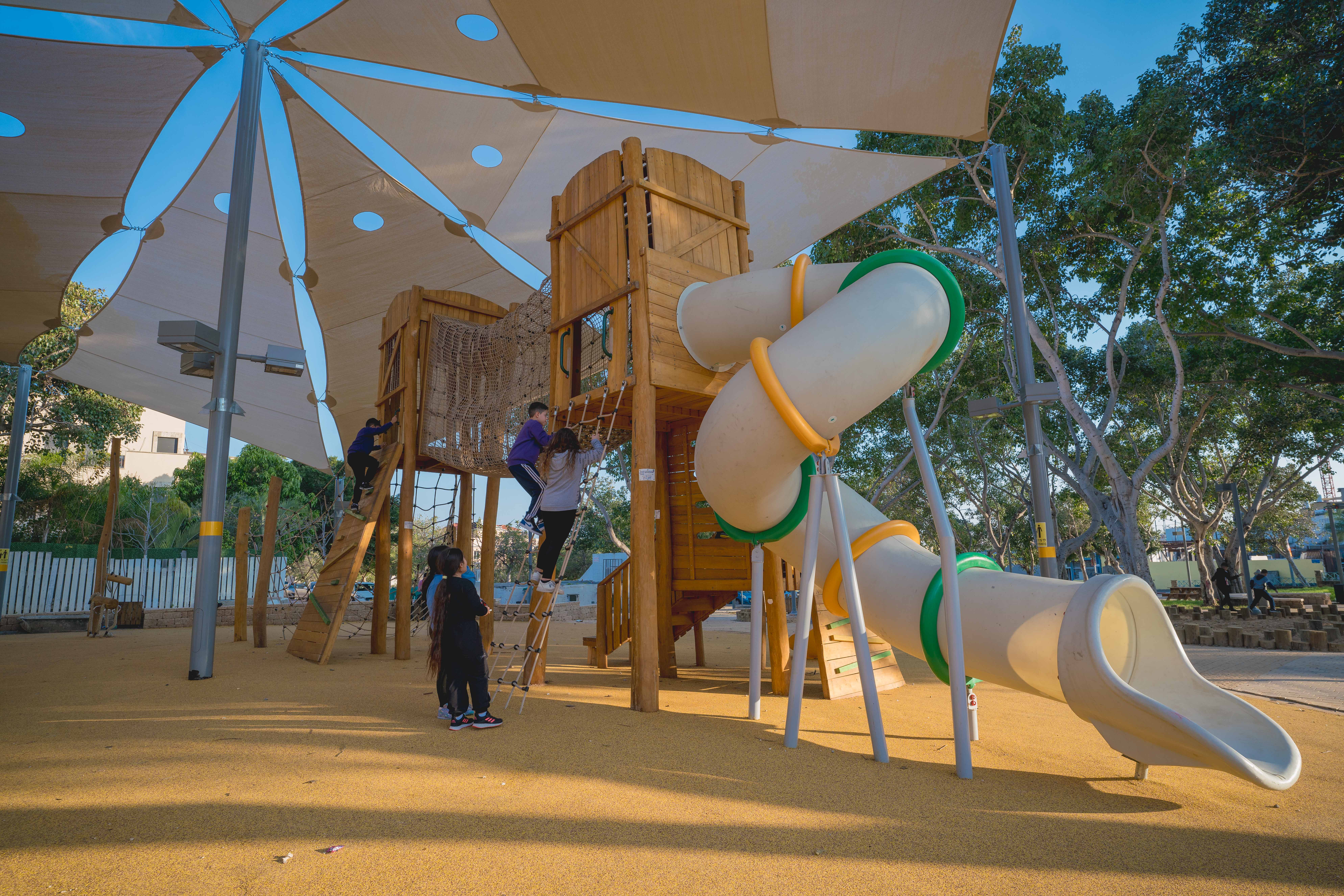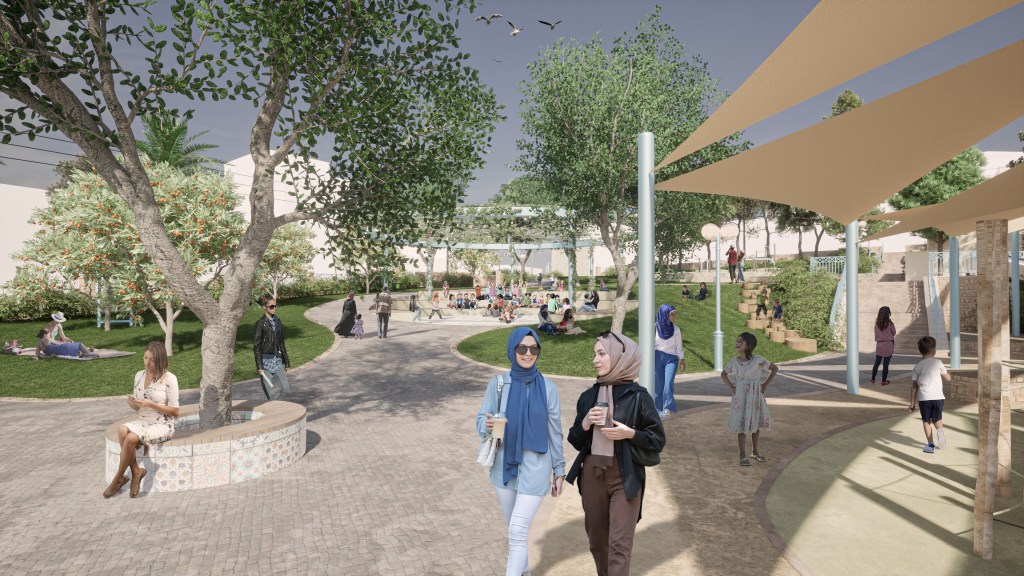 In 2022 heeft StudioDeBom samen met Humankind en NadelRoizin architects gewerkt aan een herontwerp van het park Garden of the Two in de arabische wijk Jaffa in de stad Tel Aviv. We hebben met behulp van een uitgebreide bewonersparticipatie en gesprekken met lokale historici een hoop input en inspiratie gekregen voor dit project. Het is een inclusief park geworden waar oud, jong, valide en invalide personen elkaar makkelijk kunnen ontmoeten. Het park bevat een buiten theater voor lezingen, kindervoorstellingen en demonstraties. Een natuurspeelplaats voor de kleintjes uit de buurt. Een plek waar de sportievelingen hun energie kwijt kunnen en een inclusieve diner plek in de schaduw voor de ouderen en minder valide bewoners uit de buurt. Daarnaast hebben we meer vergroening toegepast en heel specifiek een aantal sinaasappelbomen geplant die een historische en culturele waarde hebben in dit gebied. Het ontwerp is goed gekeurd en is in 2024 een opgeleverd.