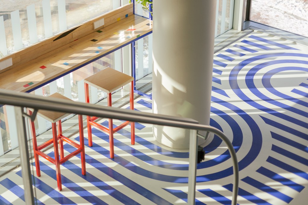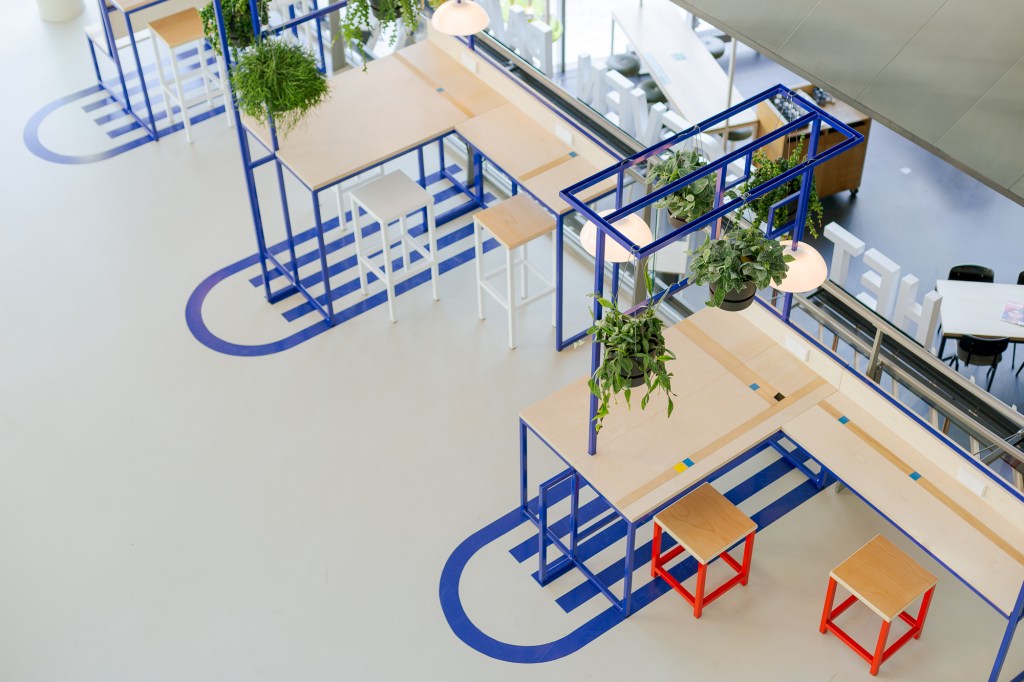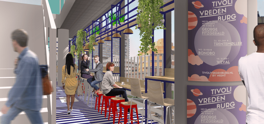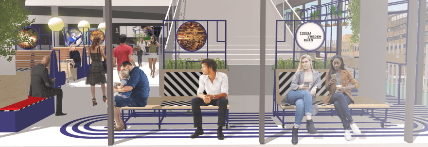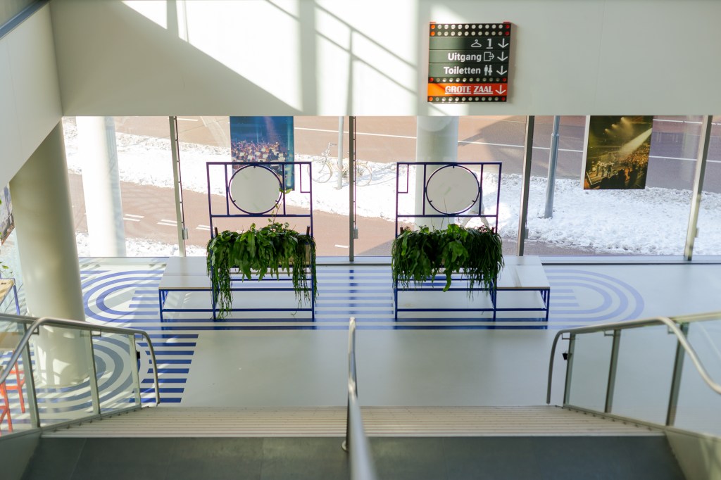 De Ronda 1 is een nieuwe plek binnen Tivolivredenburg waar bezoekers op hun gemak kunnen wachten op een tof concert ,gezellig kunnen naborrelen met vrienden of overdag kunnen komen om te studeren en werken. Het ontwerp moest twee type bezoekers aanspreken, een wat ouder klassiek publiek wat de grote zaal bezoekt en het jongere publiek van de popconcerten & dansavonden uit de Ronda zaal. We hebben gekozen voor een uitstraling geïnspireerd op de art deco stijl met een vleugje jeugdigheid doormiddel van versimpelde vormen en het gebruik van kleur. De Ronda 1 is een plek waar je met een groep vrienden gezellig kan zitten, maar waar je tegelijkertijd ook knus van de rest kan terugtrekken om stiekem met je date te gaan zoenen. We hebben de wensen vanuit TivoliVredenburg en het gebruik van de bezoeker samen laten komen in dit ontwerp. De uitvoer met deels tweedehands materialen is door Studio Siep gedaan, een lokale meubelmaker die heel mooi werk heeft geleverd.